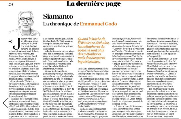 Cette destinée tragique, que partagèrent tant d’Arméniens, est celle d’un des plus grands poètes de son époque. La poésie de Siamanto frappe avant tout par son intensité extraordinaire, une véhémence qui s’exprime par la profusion des images et une puissance vraiment visionnaire des évocations. Hanté jour et nuit par le martyre subi par son peuple, Siamanto semble se révolter contre l’idée de l’oubli où pourraient sombrer tant de souffrances. Sa douleur est d’autant plus bouleversante qu’il est aussi un jeune homme plein d’énergie, qui veut croire en l’espoir d’une rébellion, voire d’une libération, malgré le destin qui l’accable.